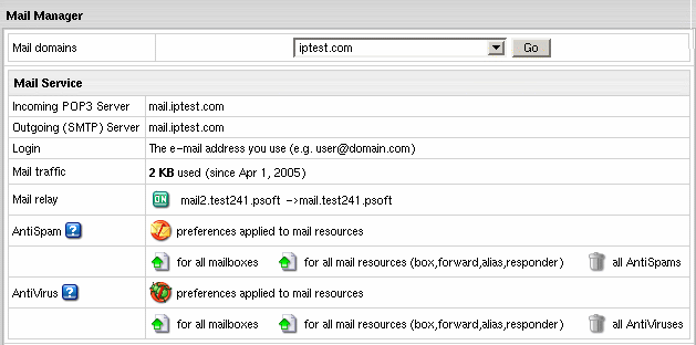 - Click Go and you will see the mail service details of the chosen mail domain: