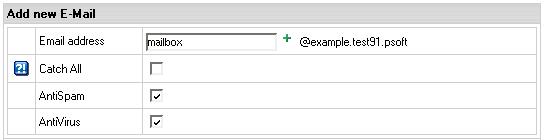 - On the page you will be taken to, add antispam either for all mailboxes of this mail domain