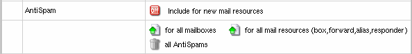 - Clicking the antispam icon will let you configure antispam settings for mail resources.