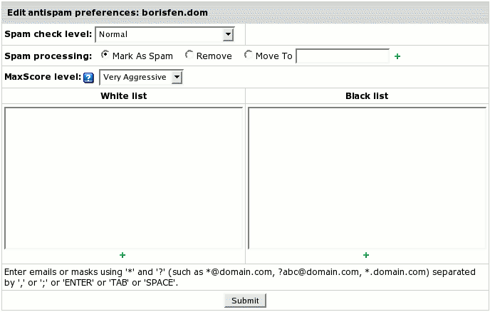 Note: White and Black Lists have priority over the spam check level.