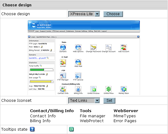 To select a skin and configure interface design settings: