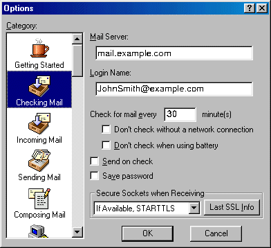 - Check for mail every "X" minutes - determine how often Eudora