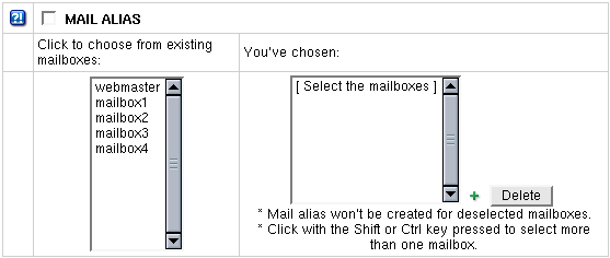 To assign a mailbox alias to more than one mailbox, click mailbox names in the