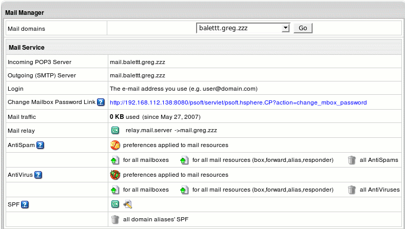 - Mail traffic: traffic run up by incoming and outgoing mail on the mail domain it is displayed for.