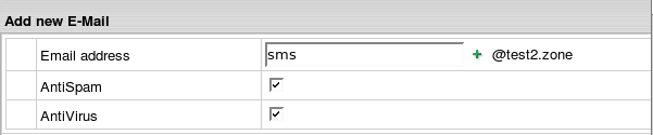- Click the Mail SMS e-mail address in the E-mail list on the maildomain Controls page.