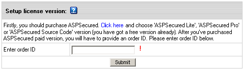 To obtain full featured ASPSecured paid version: