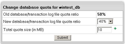 quota is 40 MB and the maximum log file quota is 60 MB. The